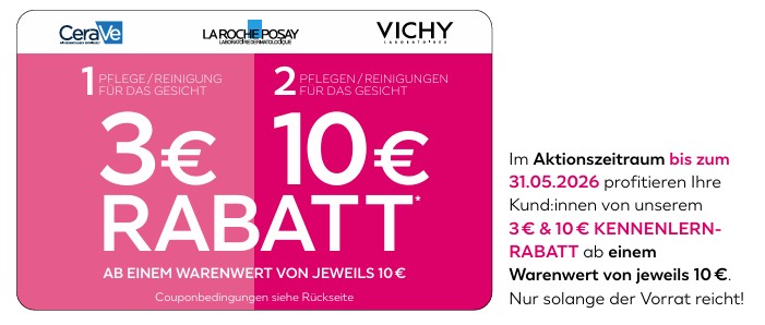 Vichy, CeraVe und La Roche Posay Kennenlernrabatt